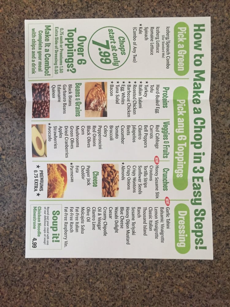 Chop Stop not only emphasizes quality ingredients but also fosters a welcoming environment, as reflected in glowing customer reviews highlighting the friendly staff and delicious offerings. Whether you're dining in or opting for takeout, Chop Stop is your go-to destination for satisfying, wholesome meals.